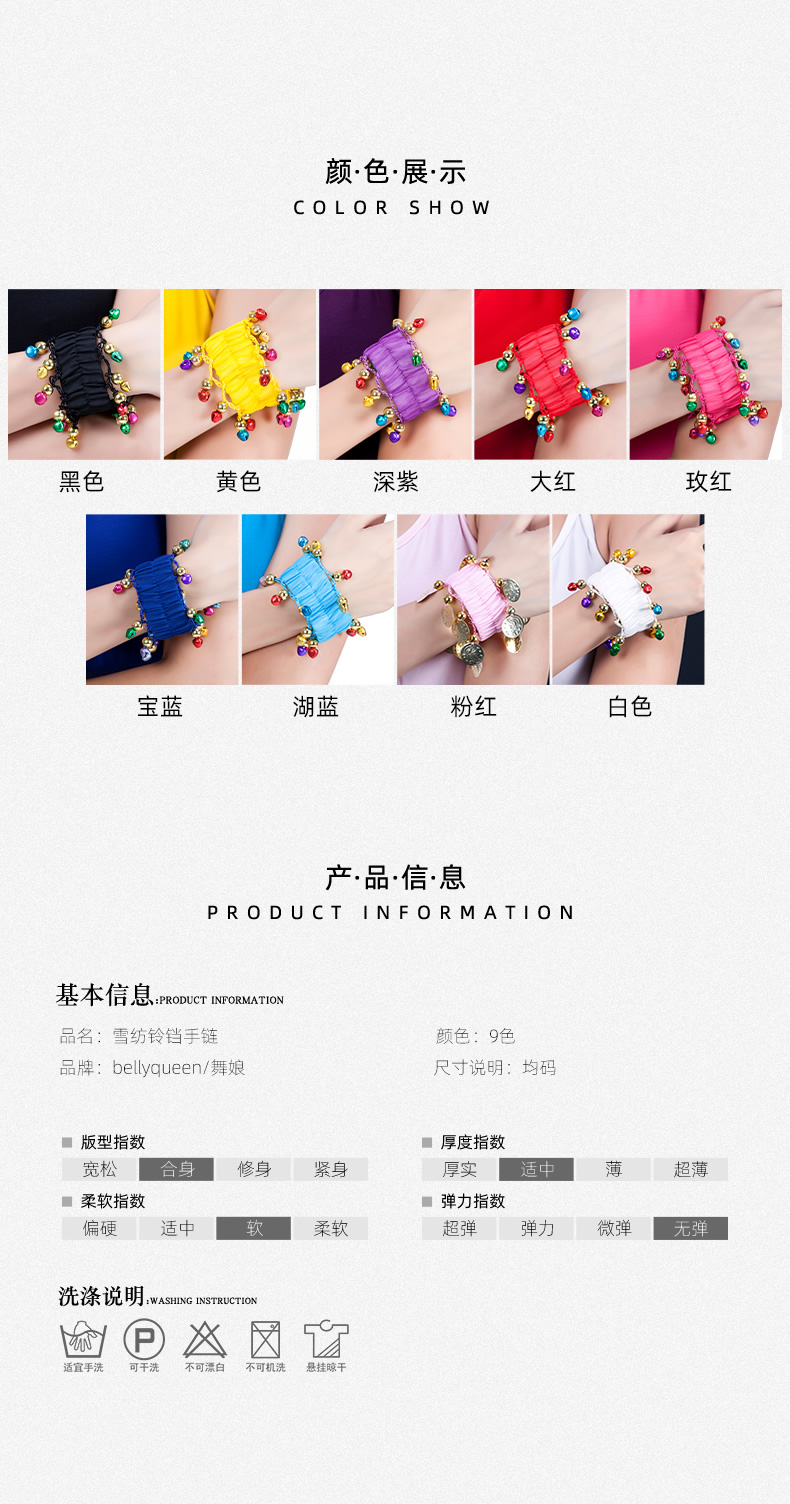 | 肚皮舞装备 >> 饰品 >> 雪纺铃铛手链 |