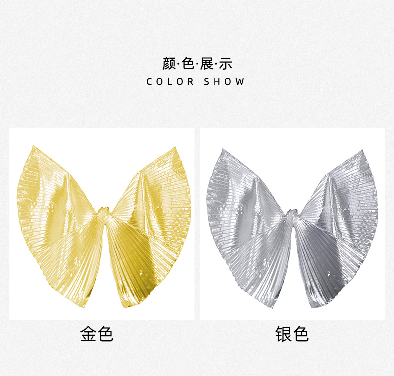 | 肚皮舞装备 >> 道具 >> 肚皮舞翅膀(金银布)开叉金翅 |