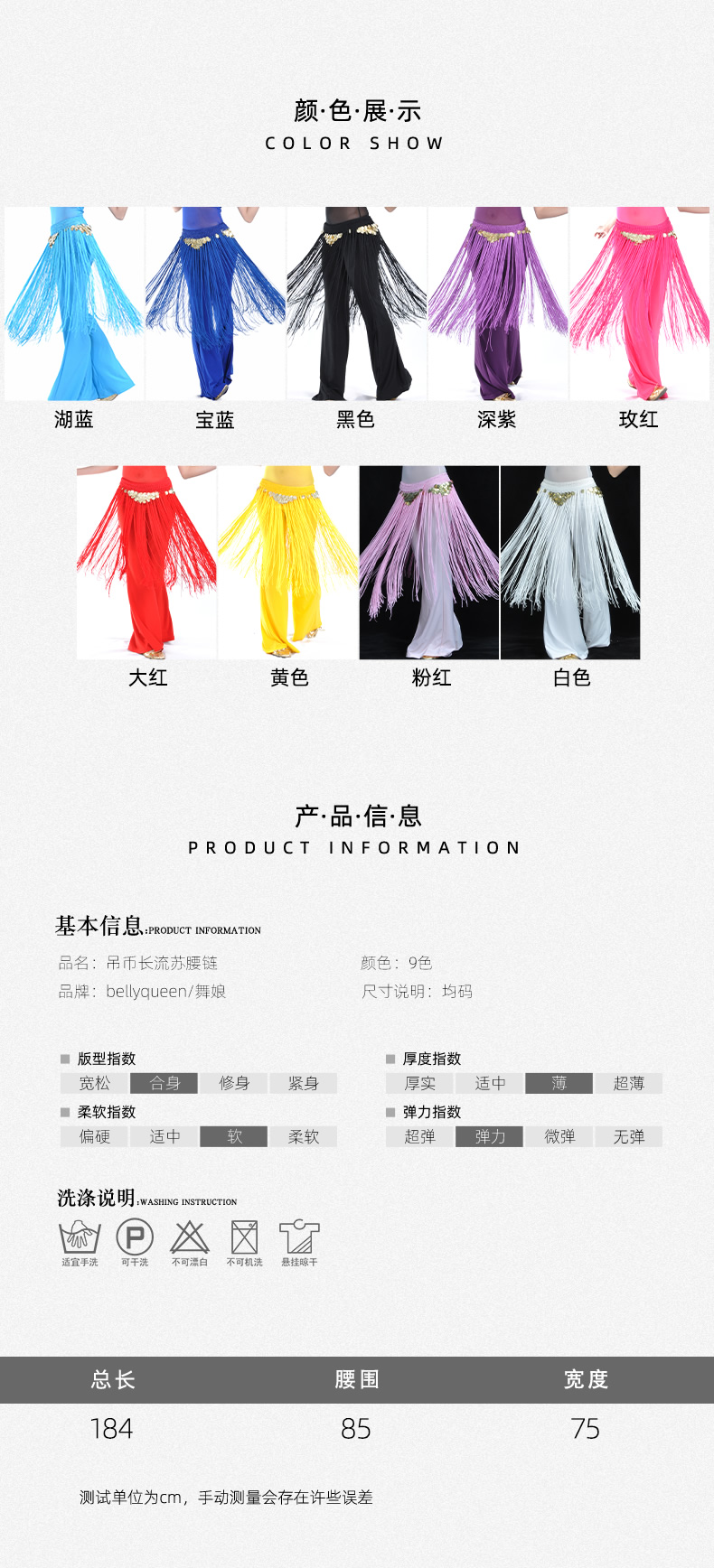 | 肚皮舞腰链 >> 专业型多币腰链 >> 吊币长流苏腰链 |