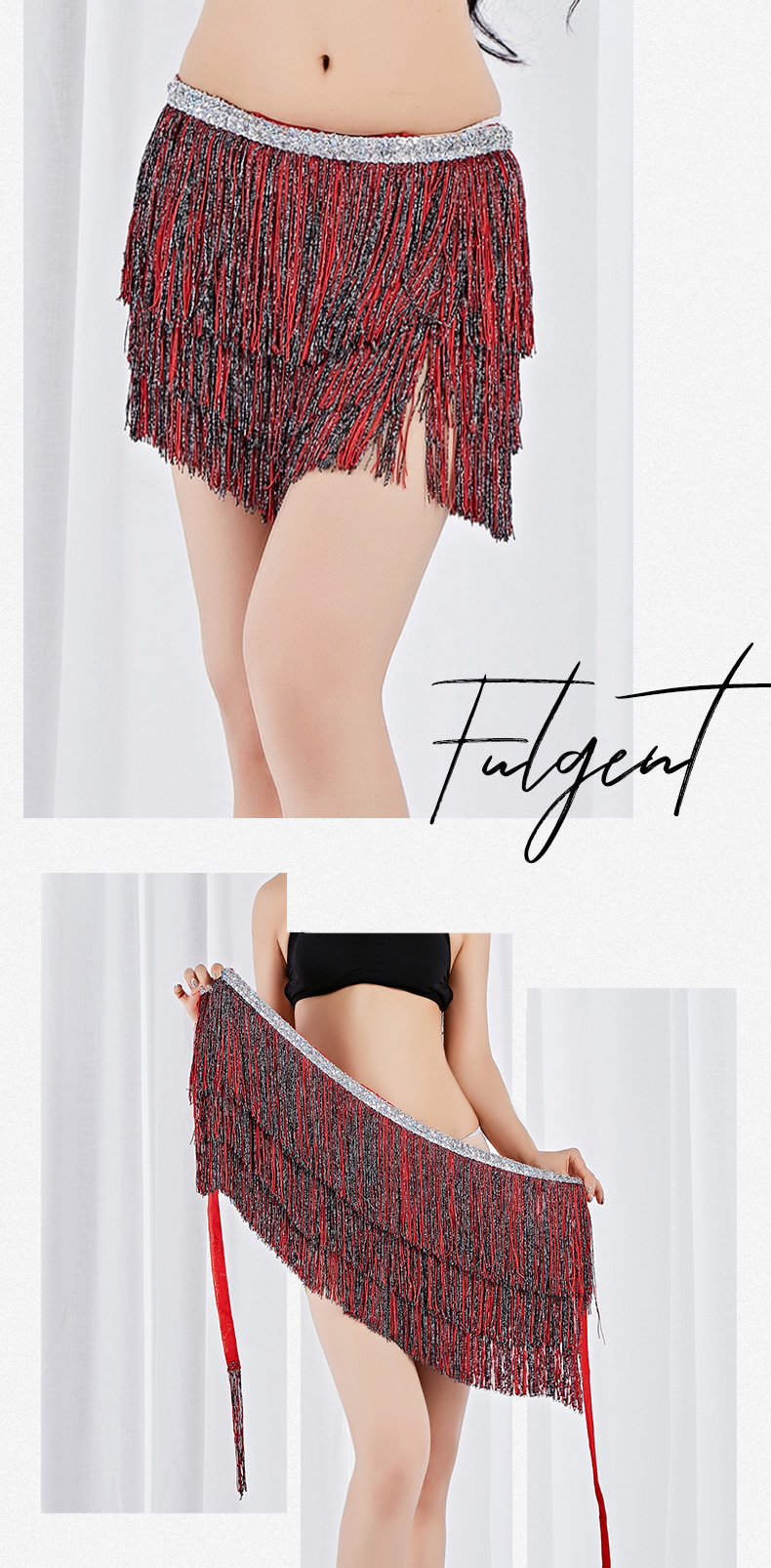 三层亮片流苏腰链 |
