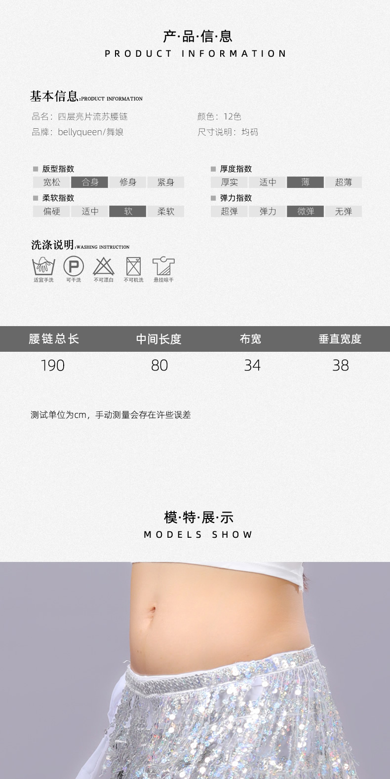 4层亮片流苏腰链 |