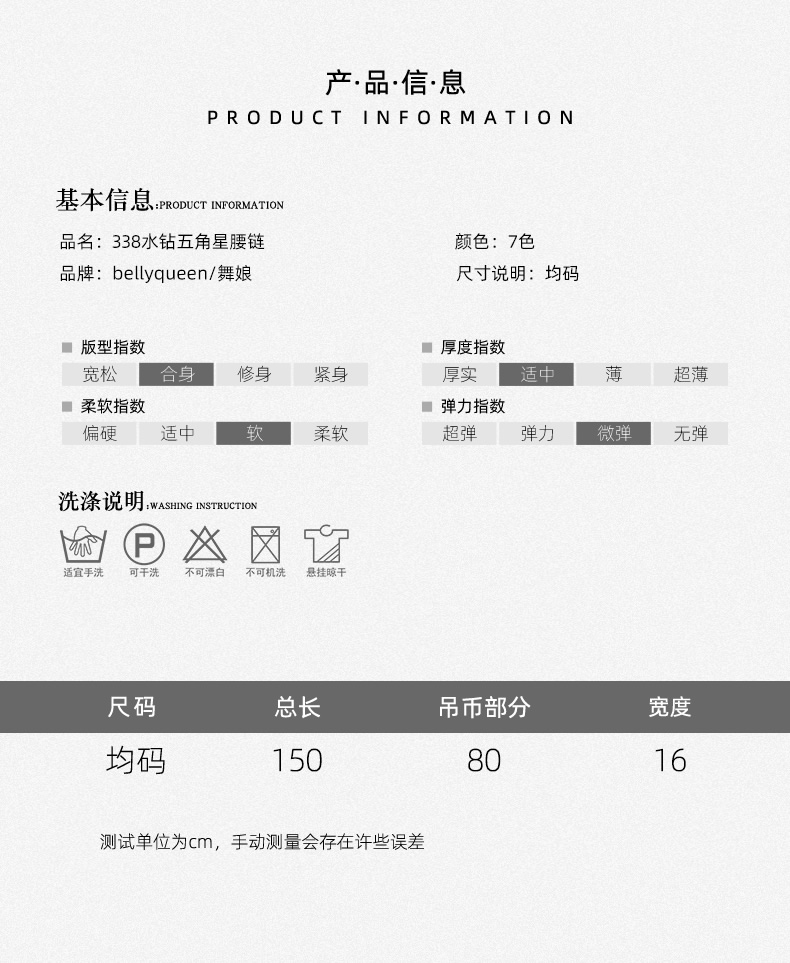 | 肚皮舞腰链 >> 专业型多币腰链 >> 338币水钻五角星腰链 |