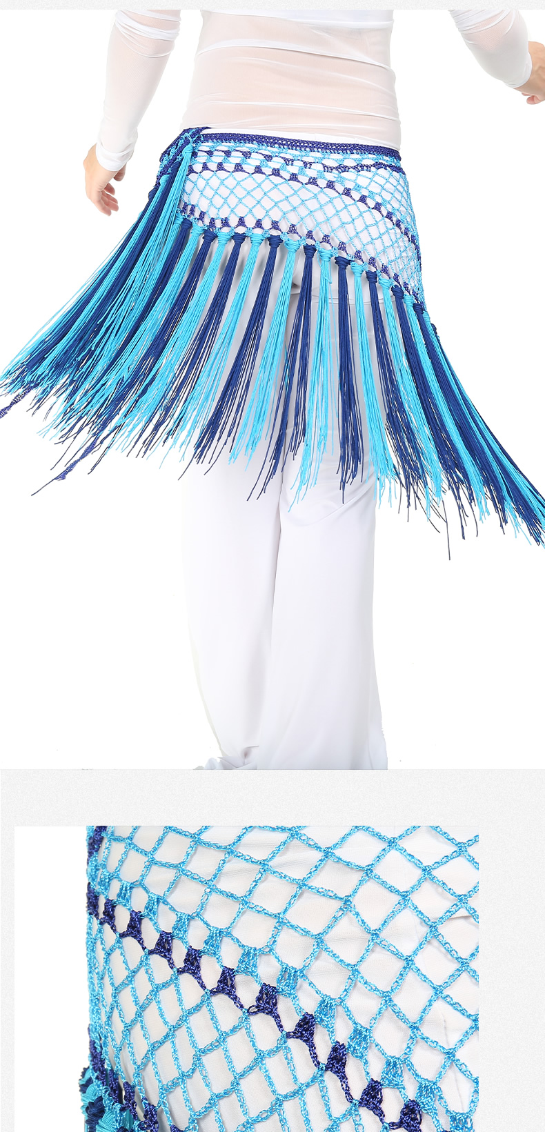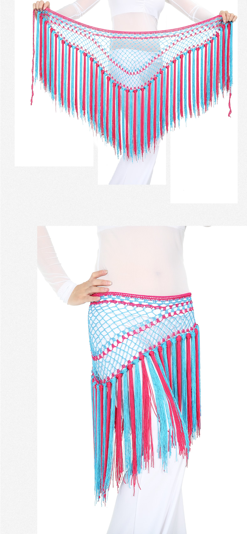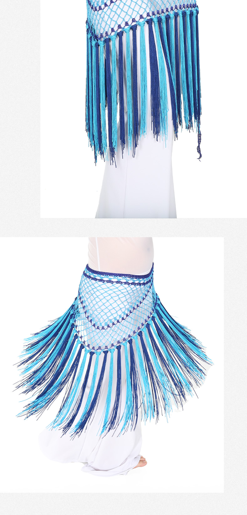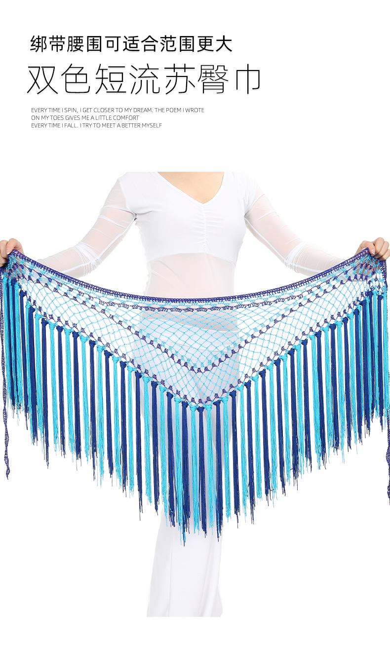 | 肚皮舞腰链 >> 专业型多币腰链 >> 阿根廷双色短流苏臀巾 |