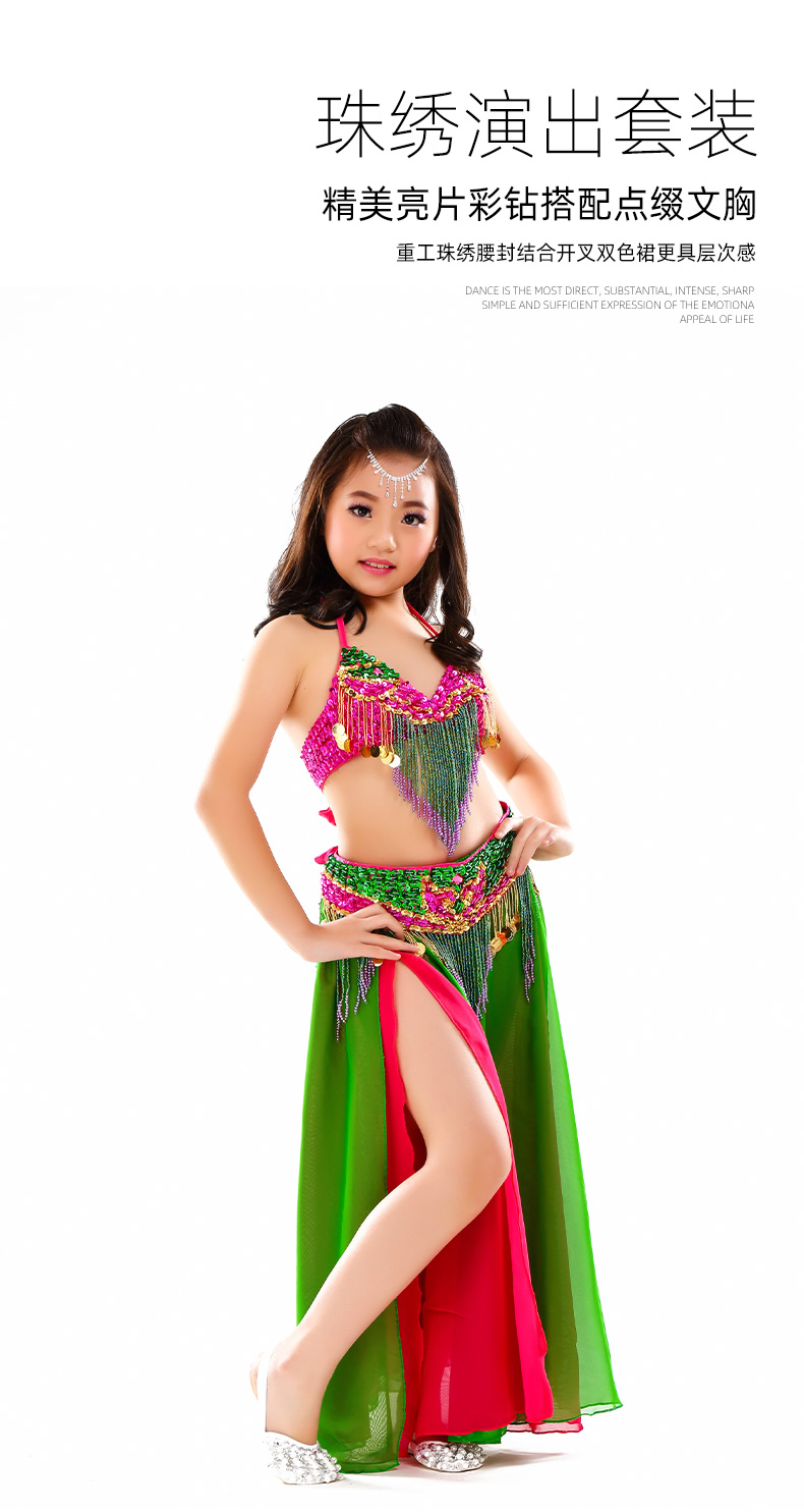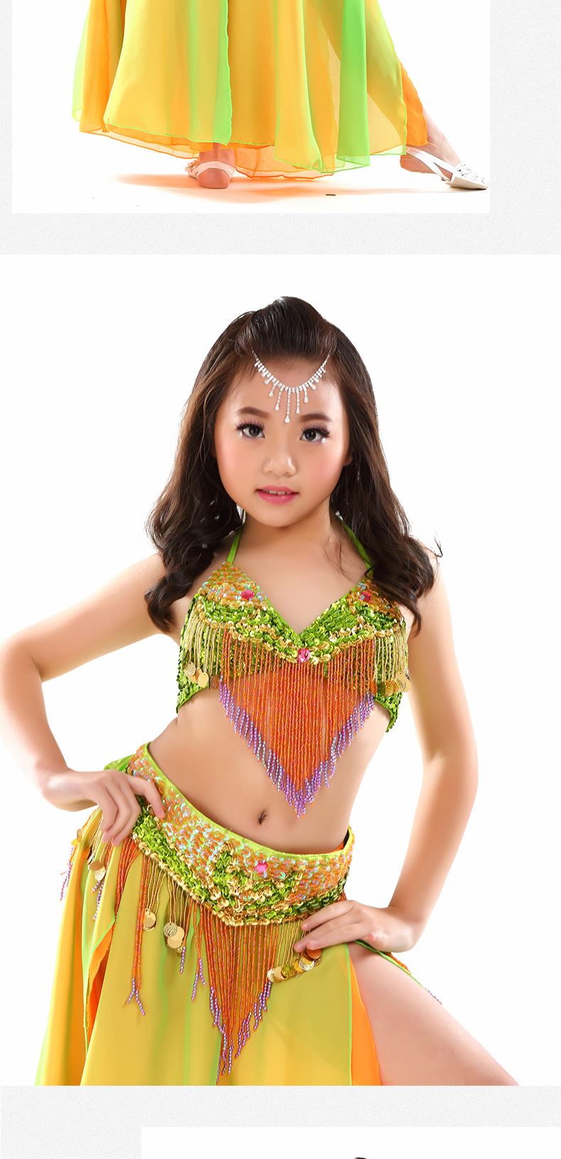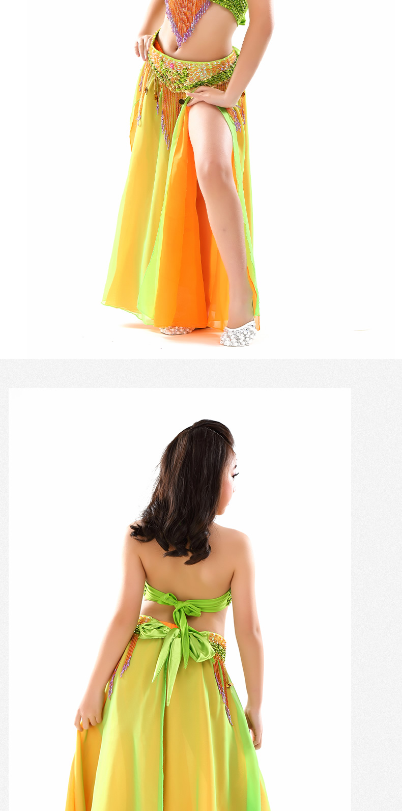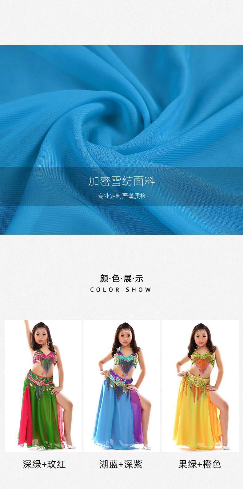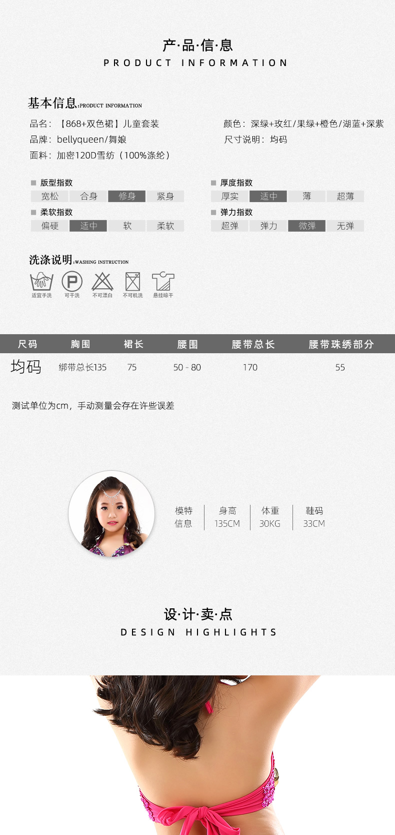 | 肚皮舞裙子 >> 练习裙子 >> 儿童868#+雪纺双开叉间色裙套装 |