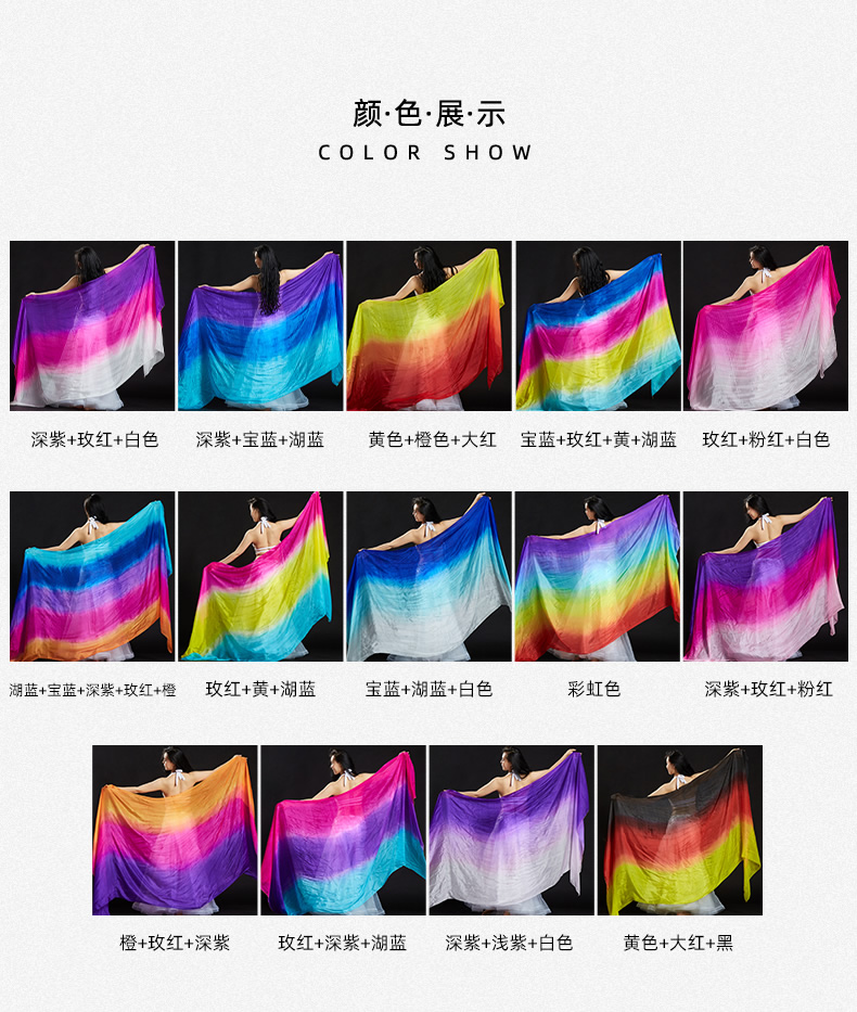 | 肚皮舞装备 >> 道具 >> 250x110cm 真丝直纹纱巾 |