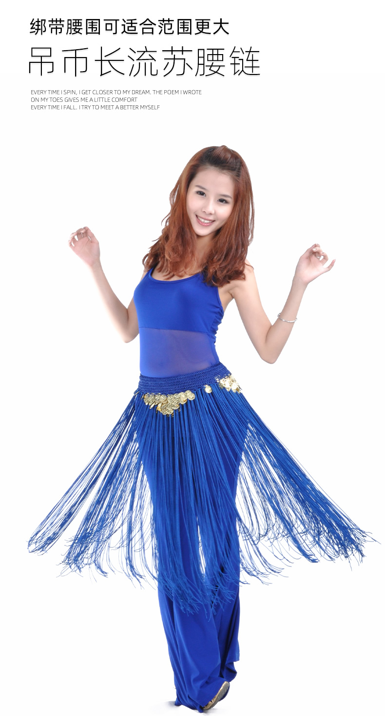 | 肚皮舞腰链 >> 专业型多币腰链 >> 吊币长流苏腰链 |